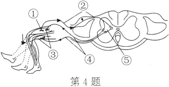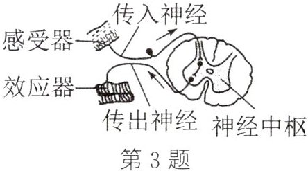3. (2024·淮安)如图是反射弧的组成示意图,其中能接受刺激,产生神经冲动的是( )