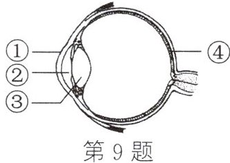 (3)人眼能看清远近不同的物体,是因为[ ]______的凸度可以根据眼与所视物体之间的不同距离而改变,使物像正好落在眼球内的[ ]______上。