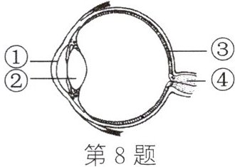 8. (2024·新疆)如图为眼球结构。下列叙述正确的是( )