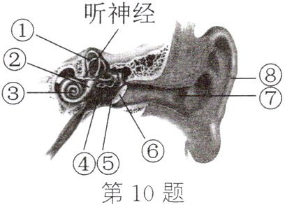 10. (核心素养)如图为人耳的基本结构示意图,据图回答问题。