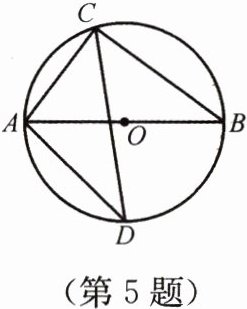 5. 如图,AB是⊙O的直径,AC是⊙O的弦,AB= 10,AC= 6,∠ACB的平分线交⊙O于点D。求BC和AD的长。