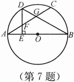 7. 如图,AB是⊙O的直径,C是⊙O上一点,D是$\overset{\frown}{AC}$的中点,DE⊥AB,垂足为E,AC分别交DE、DB于点F、G。AF与FG相等吗?为什么?