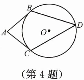 4. 如图,$AB$、$AC是\odot O$的切线,切点分别为$B$、$C$,$D是\odot O$上一点.已知$\angle A = 80^{\circ}$,则$\angle D= $____.