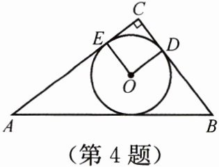 4. 如图,在$\triangle ABC$中,$\angle C= 90^{\circ }$,内切圆$O分别与BC$、$AC相切于点D$、$E$.判断四边形$ODCE$的形状,并说明理由.