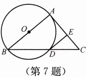 7. 如图,$AB是\odot O$的直径,$AC是\odot O$的切线,$BC交\odot O于点D$,$E是AC$的中点.判断$DE与\odot O$的位置关系,并说明理由.
