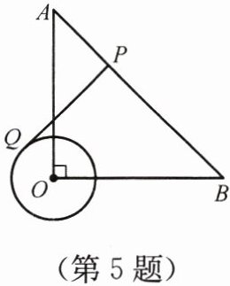 5. 如图,在$\triangle AOB$中,$\angle AOB= 90^{\circ}$,$OA= OB= 3\sqrt{2}$,$P是AB$上的一个动点,过点$P$作半径为1的$\odot O$的切线,切点为$Q$,则$PQ$的最小值为____.