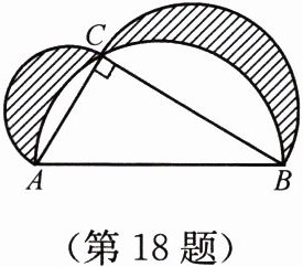 18. 如图,在$Rt\triangle ABC$中,$\angle ACB= 90^{\circ}$,$AB= 5$,$AC= 3$,分别以$AC$、$BC$、$AB$为直径作半圆. 求图中阴影部分的面积.