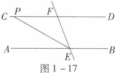 18. 如图 1 - 17,$AB// CD$,EF 与 AB,CD 分别交于点 E,F,$∠AEF$的平分线交 CD 于点 P.