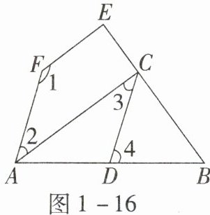 17. 如图 1 - 16,$AC// FE$,$∠1 + ∠3 = 180^{\circ}$.