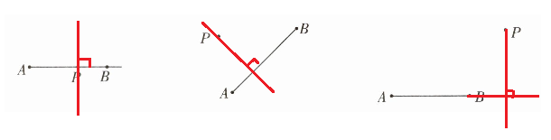 1. 画一条线段或射线的垂线,就是画它们所在直线的垂线. 如图2-1,请你在下面三个图形中,过点P画出射线AB和线段AB的垂线.