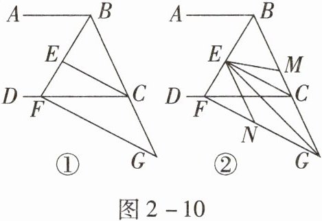 (2) 如图2-10②,点M在线段BC上,点N在线段FG上,且$∠BEM= ∠MEN$,连接EG. 直接写出一个$∠MEG$的度数,使得$∠NEG= ∠NGE$成立.
