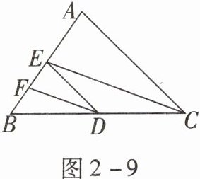 9. 如图2-9,已知$AC// DE$,$CE// DF$,CE平分$∠ACB$,求证:DF平分$∠BDE$.