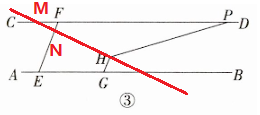 ②当点P运动到图2-11③所示的位置时,补全图形,直接用等式写出$∠HPD$,$∠MFE与∠ENM$之间的数量关系.