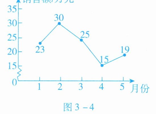 2. 图 $ 3 - 4 $ 是某手机店今年 $ 1 $ 至 $ 5 $ 月份音乐手机的销售额情况统计图。根据图中信息,可以判断相邻两个月音乐手机销售额变化最大的是(