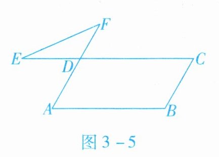4. 如图 $ 3 - 5 $ 所示,在 $ □ ABCD $ 中,$ \angle B = 110^{\circ} $,延长 $ AD $ 至点 $ F $,延长 $ CD $ 至点 $ E $,连接 $ EF $,则 $ \angle E + \angle F = $(