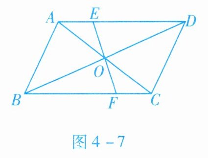 3. 如图4-7所示,在▱ABCD中,对角线AC,BD相交于点O,EF过点O分别交AD,BC于点E,F. 求证:OE = OF.