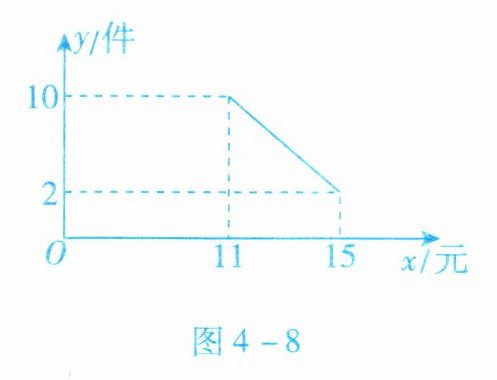 4. 莲城超市以10元/件的价格购进一批商品,根据前期销售情况,每天销售量y(件)与该商品定价x(元)是一次函数关系,如图4-8所示.