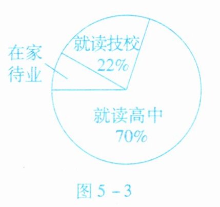 5. 某校对去年毕业的 $ 350 $ 名学生的毕业去向进行跟踪调查,并绘制出扇形统计图(图 5 - 3),则该校去年毕业生在家待业的有