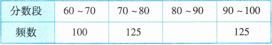 4. 某校500名学生参加生命安全知识测试,测试分数均大于或等于60且小于100,分数段的频数分布情况如下表所示(其中每个分数段包括最小值,不包括最大值),结合表中的信息,可以求得测试分数在80~90分数段的学生有