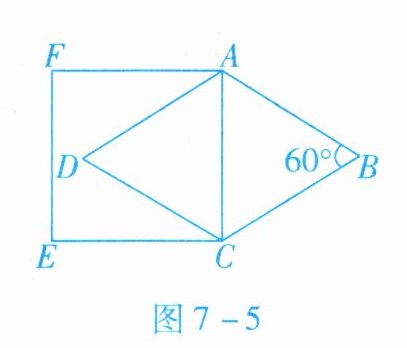 5. 如图7-5所示,在菱形ABCD中,$\angle B= 60^{\circ}$,AB= 4,则以AC为边长的正方形ACEF的周长为 (