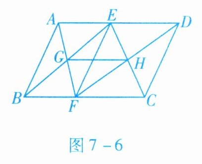 4. 如图7-6所示,在$□ ABCD$中,$EF// AB$. 求证:$GH// BC$,$GH= \frac{1}{2}BC$.