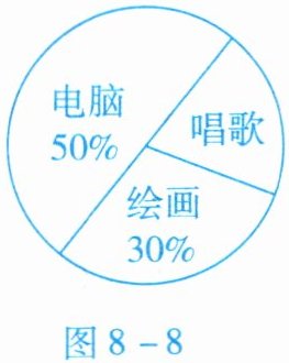 6. 图 8 - 8 是八年级(1)班参加课外兴趣小组人数的扇形统计图,则表示唱歌兴趣小组人数的扇形的圆心角度数是(