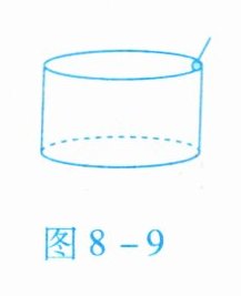 2. 如图 8 - 9 所示,有一个高 1.5 m,半径为 1 m 的圆柱形油桶,在靠近边缘的地方有一个小孔,从孔中插入桶底一根木棒,已知木棒在油桶外的部分是 0.5 m,求这根木棒的长度范围.