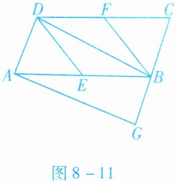 5. 如图 8 - 11 所示,在$□ ABCD$中,$E$,$F分别为边AB$,$CD$的中点,$BD$是对角线,$AG // DB交CB的延长线于点G$.