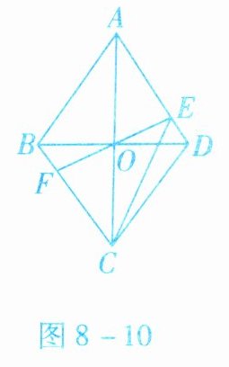 4. 如图 8 - 10 所示,已知四边形$ABCD$是边长为 2 的菱形,$\angle BAD = 60^{\circ}$,对角线$AC与BD交于点O$,过点$O的直线EF交AD于点E$,交$BC于点F$.