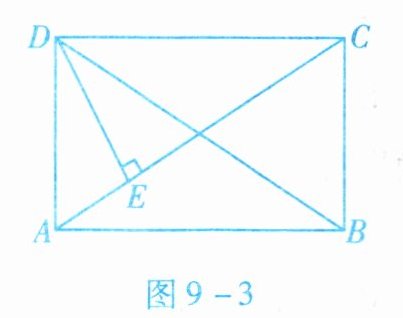 7. 如图 9 - 3 所示,在矩形 $ A B C D $ 中,$ D E \perp A C $ 于点 $ E $,$ E C = 3 A E $,$ A D = 3 \mathrm { cm } $,那么 $ A C = $