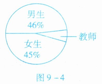 8. 某学校的男生、女生以及教师人数的扇形统计图如图 9 - 4 所示,若该校男生、女生以及教师的总人数为 $ 1200 $ 人,则根据图中信息,可知该校教师共有