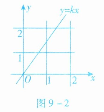 6. 如图 9 - 2 所示,若直线 $ y = k x $ 与四条直线 $ x = 1 $,$ x = 2 $,$ y = 1 $,$ y = 2 $ 围成的正方形有公共点,则 $ k $ 的取值范围是