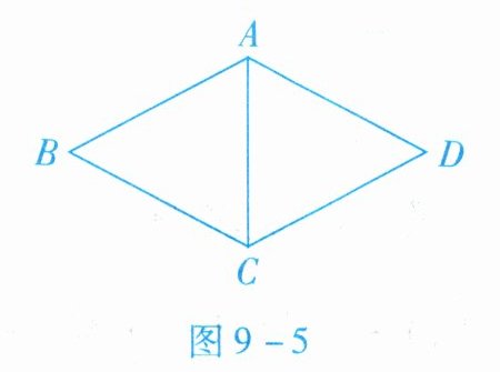 4. 如图 9 - 5 所示,在菱形 $ A B C D $ 中,$ A B = 5 $,$ \angle B C D = 120 ^ { \circ } $,则 $ \triangle A B C $ 的周长是(