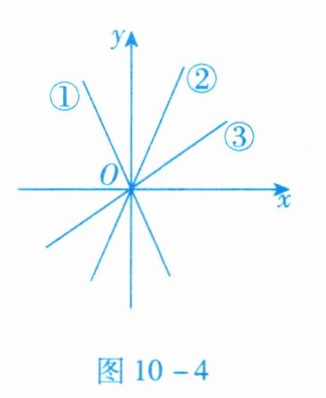 7. 如图 10 - 4 所示,三个正比例函数的图象分别对应表达式:①$y = ax$;②$y = bx$;③$y = cx$,将$a$,$b$,$c$从大到小排列并用“$>$”连接为