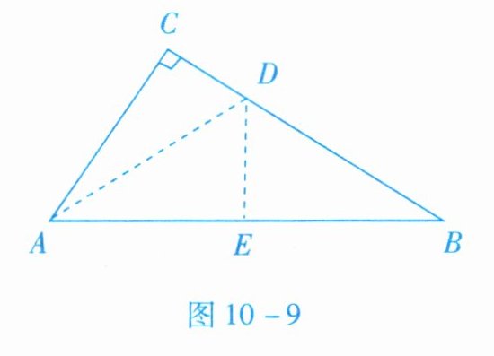 2. 如图 10 - 9 所示,直角三角形纸片$ABC$中,$\angle C = 90^{\circ}$,$AC = 6$,$BC = 8$,折叠$\triangle ABC$的一角,使点$B与点A$重合,展开得折痕$DE$,求$BD$的长。