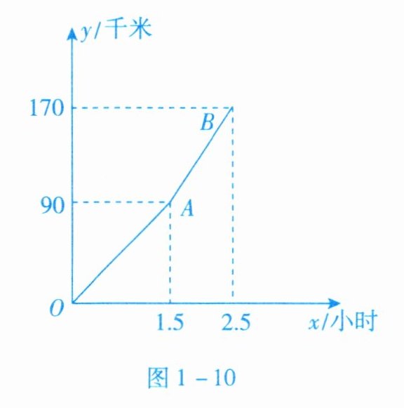 6. “五一”期间,申老师一家自驾游去了离家$170$千米的某地,图$1 - 10是他们离家的距离y$(千米)与汽车行驶时间$x$(小时)之间的函数图象.
