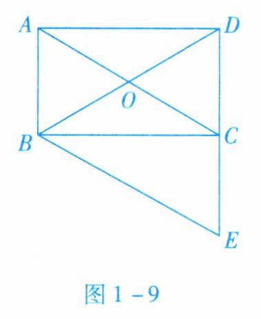 5. 如图$1 - 9$所示,四边形$ABCD$是矩形,对角线$AC$,$BD相交于点O$,$BE // AC交DC的延长线于点E$.