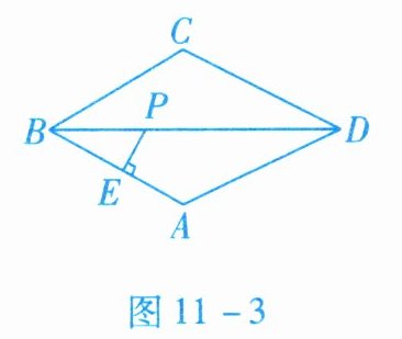 4. 如图 $ 11 - 3 $ 所示,$ P $ 是菱形 $ ABCD $ 对角线 $ BD $ 上一点,$ PE \perp AB $ 于点 $ E $,$ PE = 4 \, cm $,则点 $ P $ 到 $ BC $ 的距离是 ______$ cm $。