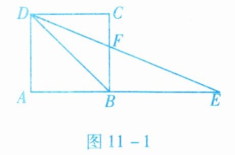 2. 如图 $ 11 - 1 $ 所示,在正方形 $ ABCD $ 中,延长 $ AB $ 至点 $ E $。若使 $ BE = DB $,连接 $ DE $ 交 $ BC $ 于点 $ F $,则 $ \angle DFB $ 的度数为 ______