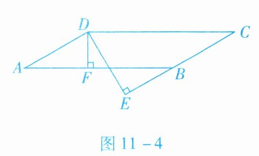 6. 如图 $ 11 - 4 $ 所示,在 $ □ ABCD $ 中,$ AB = 12 $,$ AB $ 边上的高 $ DF $ 为 $ 3 $,$ BC $ 边上的高 $ DE $ 为 $ 6 $,则 $ □ ABCD $ 的周长为