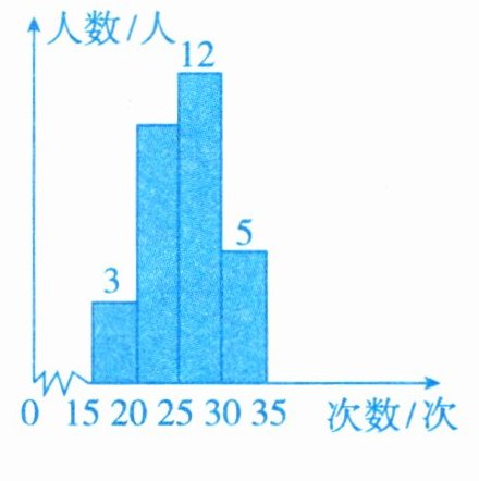8. 某校为了了解八年级学生的体能情况,随机抽查了其中的$30$名学生,测试了$1$分钟仰卧起坐的次数,并绘制成如图13 - 4所示的频数分布直方图,则仰卧起坐次数在$20 \sim 25$次的频数是