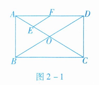 4. 如图2 - 1所示,在矩形$ABCD$中,对角线$AC$,$BD相交于点O$,点$E$,$F分别是AO$,$AD$的中点. 若$AB = 6\mathrm{cm}$,$BC = 8\mathrm{cm}$,则$\triangle AEF$的周长为