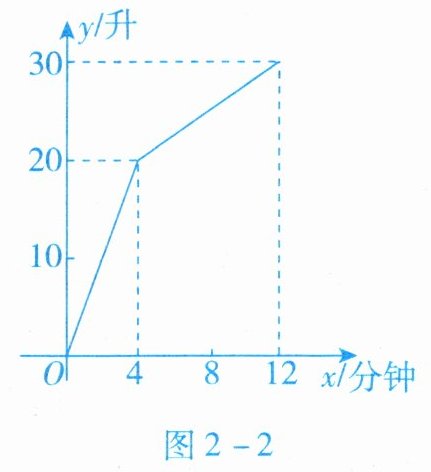 8. 一个装有进水管和出水管的容器,从某时刻开始的$4$分钟内只进水不出水,在随后的$8$分钟内既进水又出水,接着关闭进水管直到容器内的水放完. 假设每分钟的进水量和出水量是两个常数,图2 - 2所示的图象表示容器内的水量$y$(单位:升)与时间$x$(单位:分钟)之间的部分关系. 那么从关闭进水管起