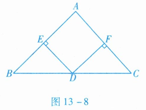 2. 如图13 - 8所示,在$\triangle ABC$中,$\angle B = \angle C$,$D是BC$的中点,$DE \perp AB$,$DF \perp AC$,垂足分别为$E$,$F$。求证: