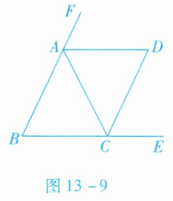 4. 如图13 - 9所示,在$\triangle ABC$中,$AB = AC$,$AD是\triangle ABC$外角的平分线,$\angle BAC = \angle ACD$,$\angle B = 60°$,求证:四边形$ABCD$是菱形。