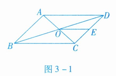 5. 如图 $ 3 - 1 $ 所示,$ □ ABCD $ 的周长为 $ 36 $,对角线 $ AC $,$ BD $ 相交于点 $ O $。点 $ E $ 是 $ CD $ 的中点,$ BD = 12 $,则 $ \triangle DOE $ 的周长为