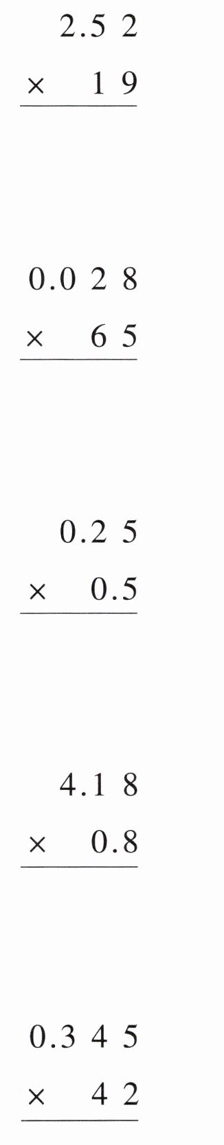 解析:这些题目都是基础的小数乘法口算题,主要考察小数乘法的计算方法和准确性。