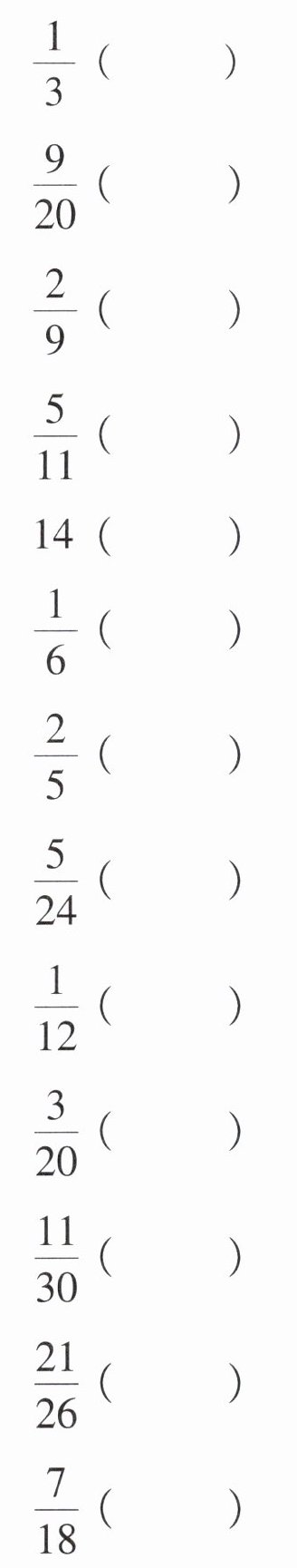 答案:$\frac{4}{5}$;$\frac{6}{11}$;$\frac{7}{38}$;$\frac{8}{21}$;$\frac{1}{72}$;$\frac{13}{24}$;$\frac{10}{67}$;$\frac{4}{27}$;$\frac{19}{26}$;$\frac{1}{25}$;$\frac{12}{35}$;$\frac{15}{41}$;$\frac{17}{52}$。