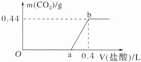 12. 向NaOH和$Na_2CO_3$的混合溶液中滴加$3.65 g·L⁻^1$的稀盐酸,生成的$CO_2$的质量与加入盐酸的体积的关系如图所示。下列判断正确的是(