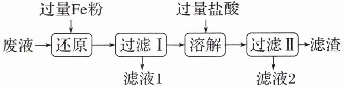 8. C [还原过程中铁与铁离子反应生成亚铁离子,铁与铜离子反应生成亚铁离子和铜,溶液中不可能存在铁离子,A错误;溶解过程中,铁与盐酸反应生成氯化亚铁和氢气,离子方程式为Fe + 2H⁺ = Fe²⁺ + H₂↑,B错误;滤液1和滤液2的主要成分为氯化亚铁,两者合并后通入氯气,氯气与氯化亚铁反应生成氯化铁,可重新获得氯化铁溶液,C正确;滤渣为铜,D错误。]